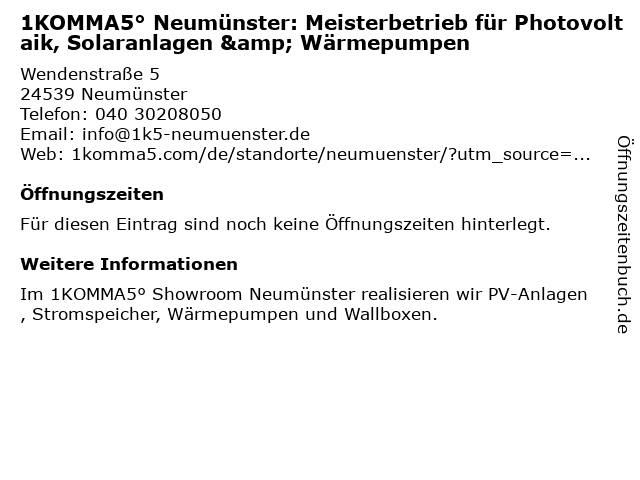 | 1KOMMA5° Neumünster: Meisterbetrieb für Photovoltaik, Solaranlagen & Wärmepumpen anrufen | |