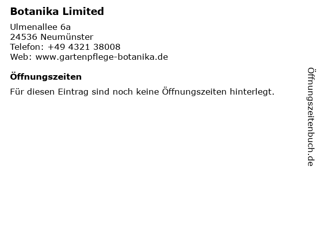 | Öffnungszeiten Botanika Limited in Neumünster anzeigen | |