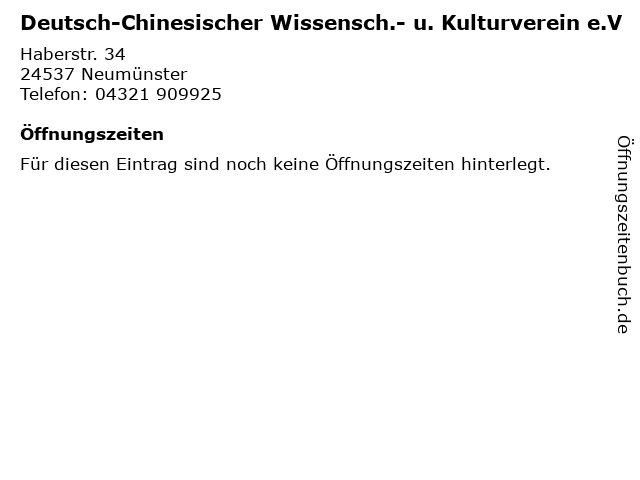 | Deutsch-Chinesischer Wissensch.- u. Kulturverein e.V anrufen | |
