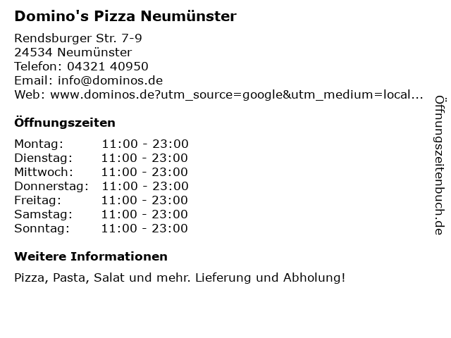 | Öffnungszeiten Domino's Pizza Neumünster in Neumünster anzeigen | |