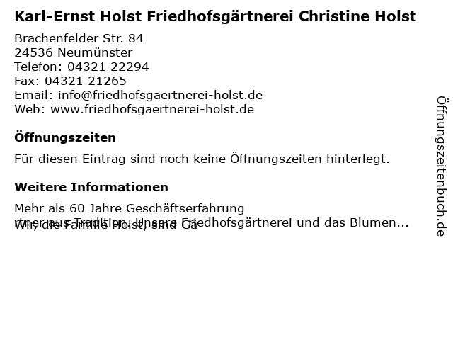 | Karl-Ernst Holst Friedhofsgärtnerei Christine Holst anrufen | |