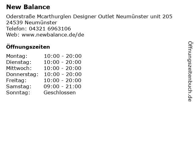 | Öffnungszeiten New Balance in Neumünster anzeigen | |