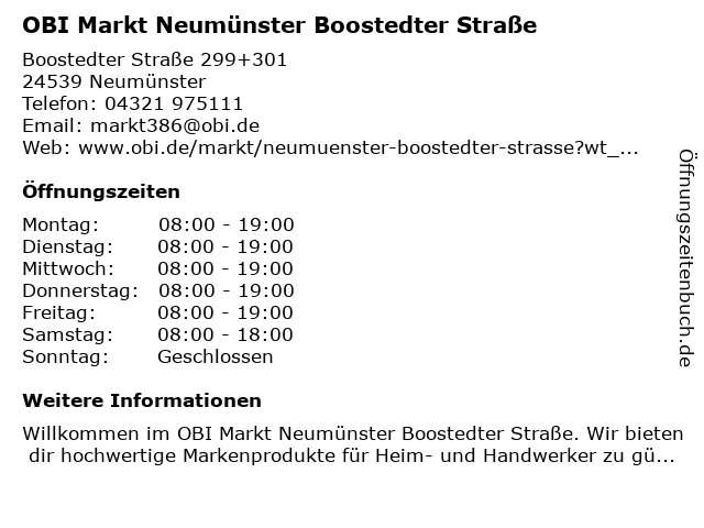 Branchen & Suchbegriffe zu OBI Markt Neumünster Boostedter Straße:anbieter für baumaterial, boostedter, markt, obi, straße |