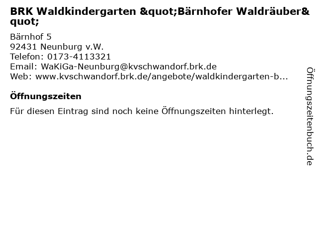 | BRK Waldkindergarten "Bärnhofer Waldräuber" anrufen | |