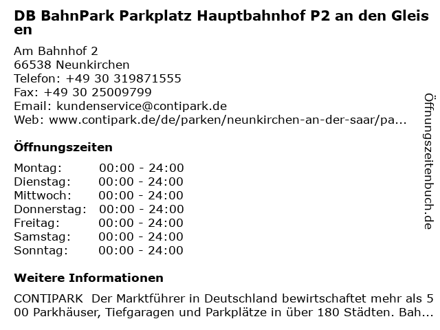 Branchen & Suchbegriffe zu DB BahnPark Parkplatz Hauptbahnhof P2 an den Gleisen:24/7, an, bahnpark, bequem, dauerparken, db, den, gleisen, günstig, hauptbahnhof, p2, parken, parken hauptbahnhof p2 an den gleisen, parken neunkirchen, parkplatz, parkplatz neunkirchen, zentral |