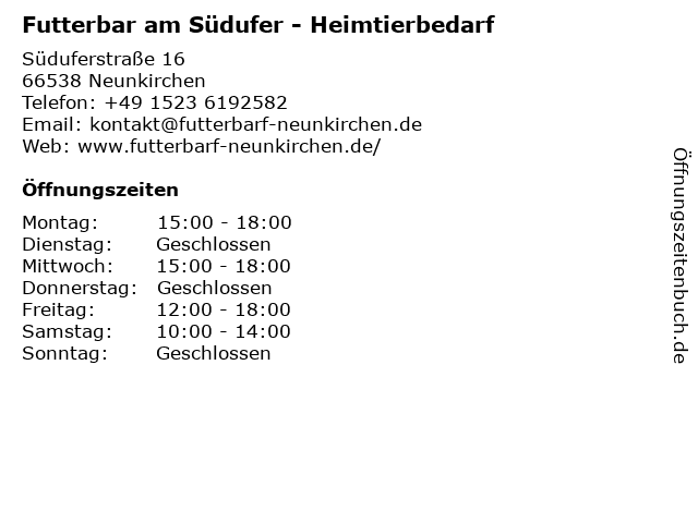 1 Schwandt-Heimtierbedarf, Alexander Schwandt (Entfernung: 12,21 km) Güstrower Chaussee 21, 18276 Gülzow 2 Wild und Geflügel “Schlemmerlädchen” Gaby & Stefan Lorig (Entfernung: 0,59 km) Wellesweiler Straße 83a, 66538 Neunkirchen 4 OBI Aquaristik & Tierbedarf im Markt Neunkirchen (Entfernung: 1,39 km) Bliesstraße 80, 66538 Neunkirchen 6 |
