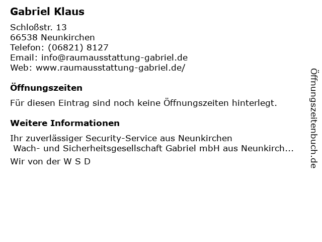 | Öffnungszeiten Gabriel Klaus in Neunkirchen anzeigen | |