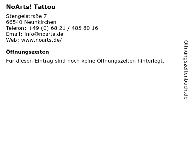 | Öffnungszeiten NoArts! Tattoo in Neunkirchen anzeigen | |