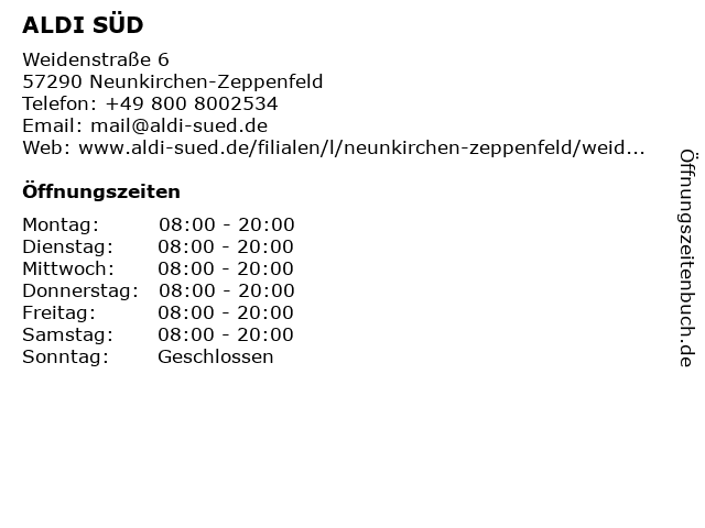 | Adresse ALDI SÜD in Neunkirchen-Zeppenfeld anzeigen |