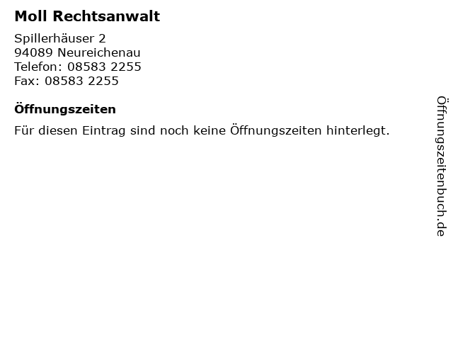 | Öffnungszeiten Moll Rechtsanwalt in Neureichenau anzeigen | |