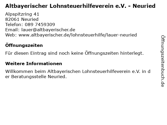 | Altbayerischer Lohnsteuerhilfeverein e.V. - Neuried anrufen | |