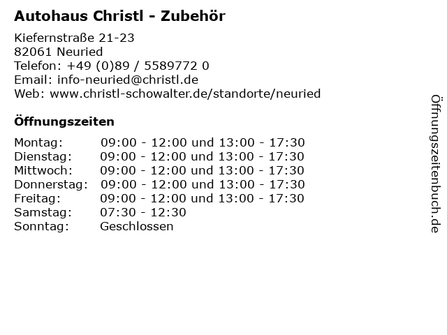 3 I.B.E. Ing.-Büro G. Eli Ges. für Drucktechnik + Zubehör mbH (Entfernung: 0,28 km) Laubenweg 5, 82061 Neuried 4 Bayrol Deutschland GmbH Schwimmbadanlagen und Zubehör (Entfernung: 2,96 km) Robert-Koch-Str. 4, 82152 Planegg-Steinkirchen 5 Autohaus Christl & Schowalter GmbH & Co. KG - Verkauf (Entfernung: 3,10 km) Filchnerstraße 86-88, 81476 München 6 Autohaus Christl & Schowalter GmbH & Co. KG - Service (Entfernung: 3,10 km) Filchnerstraße 86-88, 81476 München |