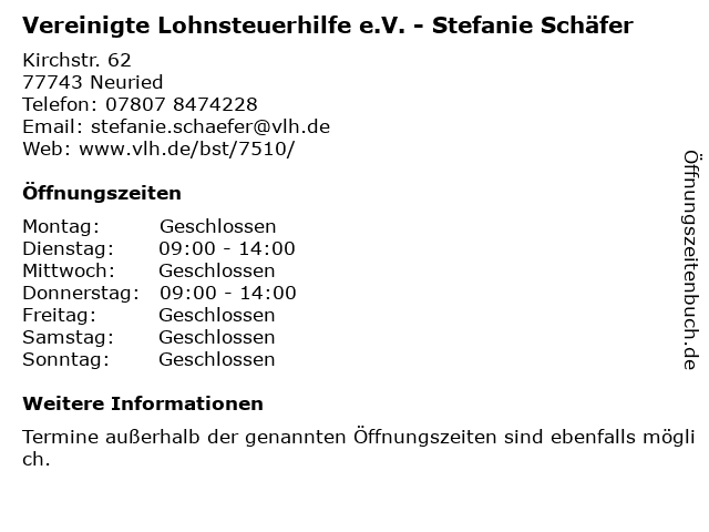 Branchen & Suchbegriffe zu Vereinigte Lohnsteuerhilfe e.V. - Stefanie Schäfer:e.v., lohnsteuer, lohnsteuerhilfe, schäfer, stefanie, steuer, vereinigte |