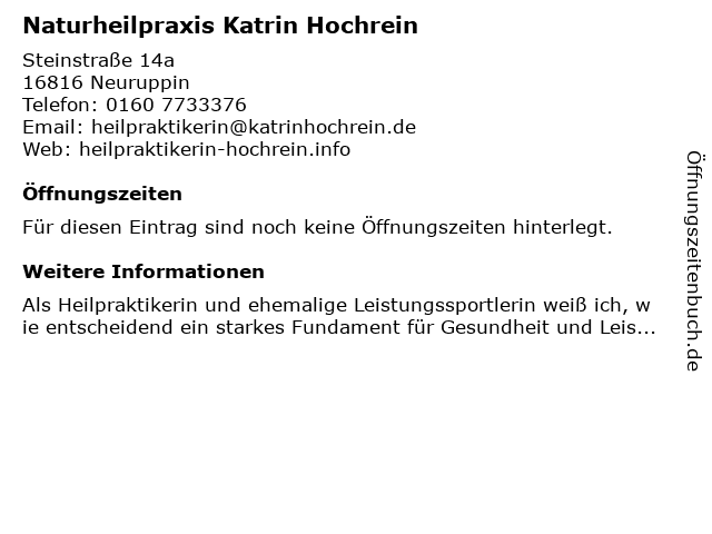 | Naturheilpraxis Katrin Hochrein anrufen | |