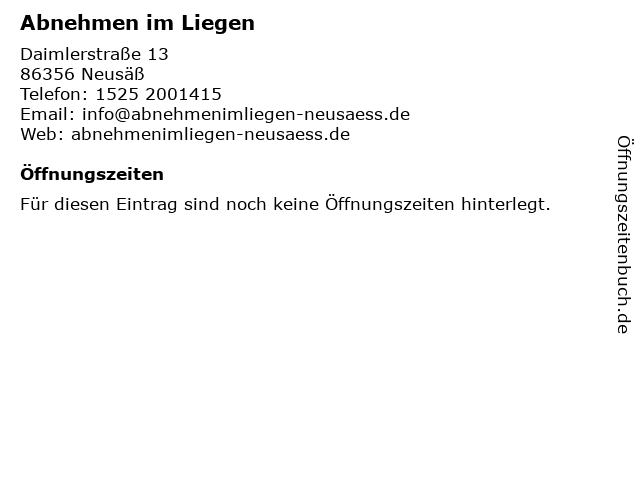 | Öffnungszeiten Abnehmen im Liegen in Neusäß anzeigen | |