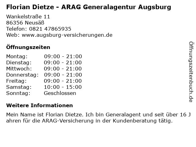 Branchen & Suchbegriffe zu Florian Dietze - ARAG Generalagentur Augsburg:arag, dietze, florian, generalagentur |