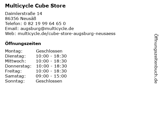| Öffnungszeiten Multicycle Cube Store in Neusäß anzeigen | |