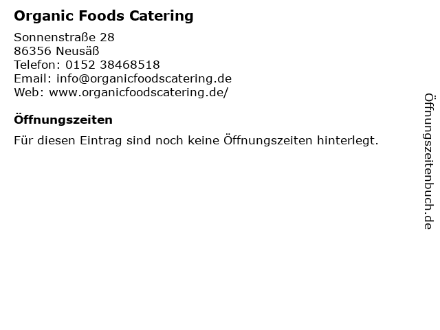 Öffnungszeiten Organic Foods Catering in Neusäß anzeigen | |