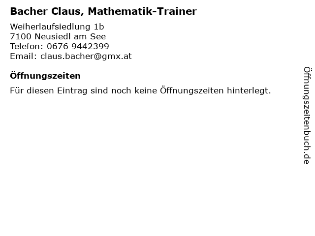 | Bacher Claus, Mathematik-Trainer anrufen | |