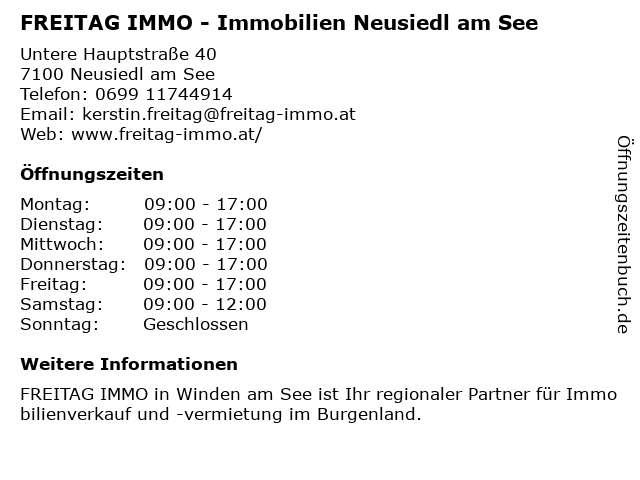 Branchen & Suchbegriffe zu FREITAG IMMO - Immobilien Neusiedl am See:börsenmakler, freitag, gewerbliche immobilienagentur, immo, immobilien, neusiedl, see, wohnungsvermietungsagentur |