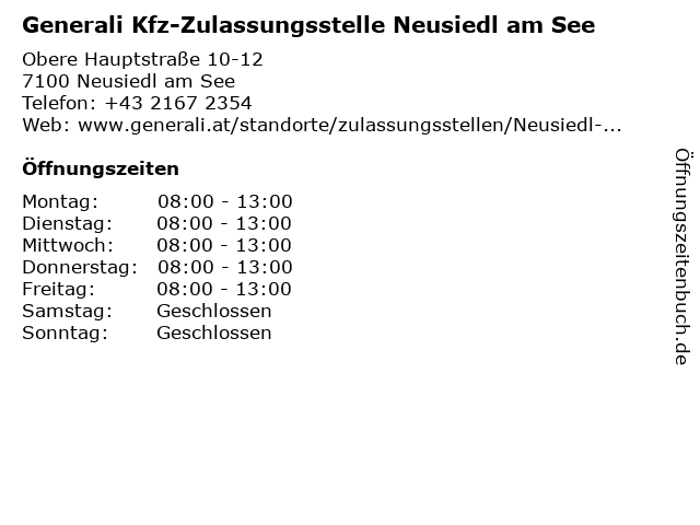 Branchen & Suchbegriffe zu Generali Kfz-Zulassungsstelle Neusiedl am See:generali, kfz, neusiedl, see, zulassungsstelle  |