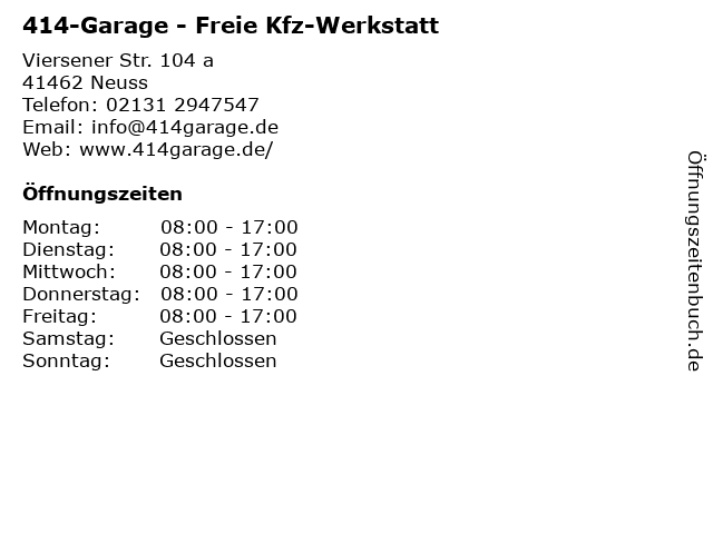 Branchen & Suchbegriffe zu 414-Garage - Freie Kfz-Werkstatt:414, freie, garage, inspektion, kfz, klimaservice, motorradservice, reifenservice, reparatur, wartung, werkstatt, ölwechsel |