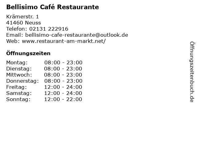 | Öffnungszeiten Bellisimo Café Restaurante in Neuss anzeigen | |