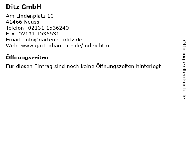 | Öffnungszeiten Ditz GmbH in Neuss anzeigen | |