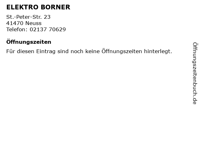 | Öffnungszeiten ELEKTRO BORNER in Neuss anzeigen | |