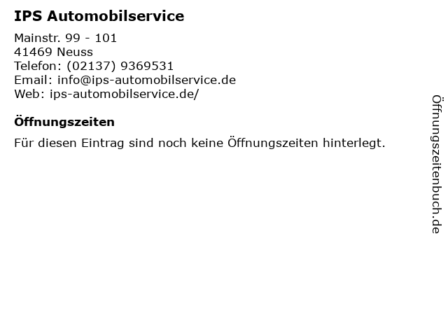 | Öffnungszeiten IPS Automobilservice in Neuss anzeigen | |