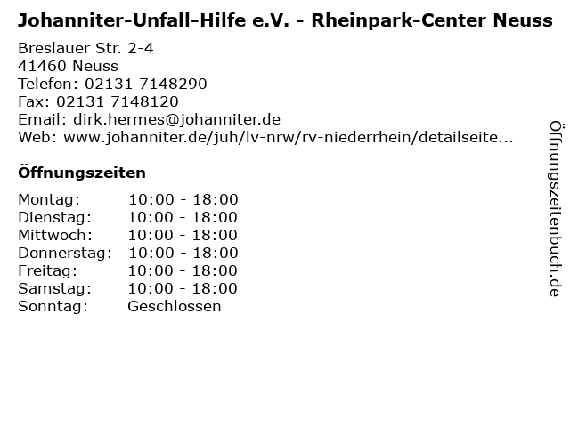 Branchen & Suchbegriffe zu Johanniter-Unfall-Hilfe e.V. - Rheinpark-Center Neuss:center, e.v., gemeinnützige organisation, hilfe, hilfsorganisation, johanniter, rheinpark, unfall, verband, wohlfahrtseinrichtung |