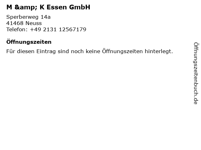 | Öffnungszeiten M & K Essen GmbH in Neuss anzeigen | |