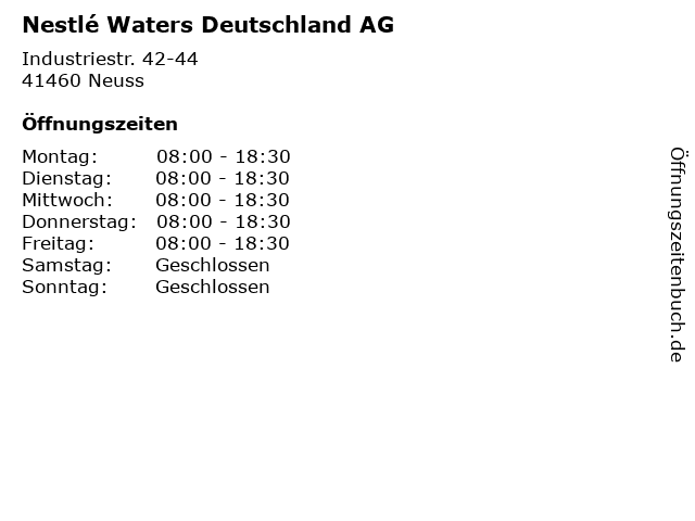 | Öffnungszeiten Nestlé Waters Deutschland AG in Neuss anzeigen | |