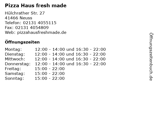 | Öffnungszeiten Pizza Haus fresh made in Neuss anzeigen | |