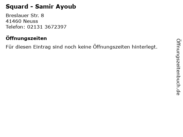 | Öffnungszeiten Squard - Samir Ayoub in Neuss anzeigen | |