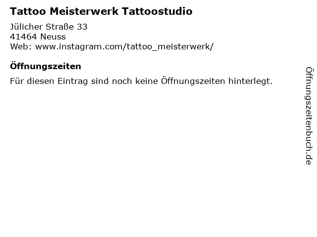 | Öffnungszeiten Tattoo Meisterwerk Tattoostudio in Neuss anzeigen | |
