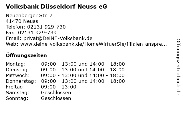 | Öffnungszeiten Volksbank Düsseldorf Neuss eG in Neuss anzeigen | |