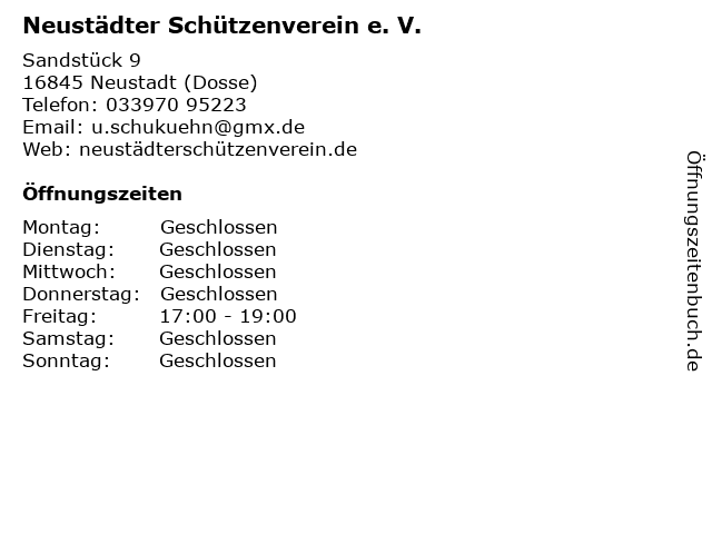 Branchen & Suchbegriffe zu Neustädter Schützenverein e. V.:e., neustädter, schützenverein, v. |