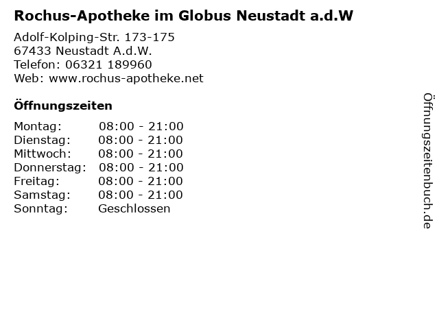 Branchen & Suchbegriffe zu Rochus-Apotheke im Globus Neustadt a.d.W:a.d.w, apotheke, globus, medikamente, rochus |
