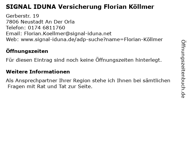 | SIGNAL IDUNA Versicherung Florian Köllmer anrufen | |