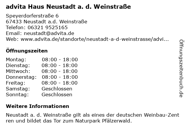 Branchen & Suchbegriffe zu advita Haus Neustadt a. d. Weinstraße:a., advita, betreutes wohnen, d., haus, seniorenheim, seniorenwohnheim, tagesbetreuung für erwachsene, weinstraße |