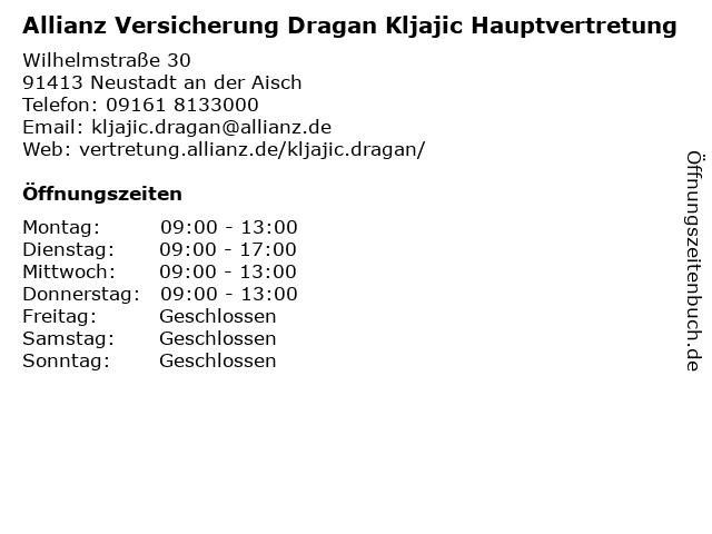 1 Allianz Versicherung Wolfgang Huscher Hauptvertretung (Entfernung: 0,28 km) Bismarckstraße 16, 91413 Neustadt an der Aisch 2 AXA Hauptvertretung Thomas Bauer (Entfernung: 0,95 km) Adolf-Scherzer-Str. 13, 91413 Neustadt a.d.Aisch 3 Allianz Versicherung Sven Pretz Hauptvertretung (Entfernung: 14,10 km) Würzburger Straße 10, 91443 Scheinfeld 5 Allianz Versicherung Stefani Eichholz Hauptvertretung (Entfernung: 19,71 km) Dr.-daßler-straße 40, 91074 Herzogenaurach 6 Dieter Tessmann Allianz Hauptvertretung (Entfernung: 19,72 km) Hintere Gasse 17, 91074 Herzogenaurach |