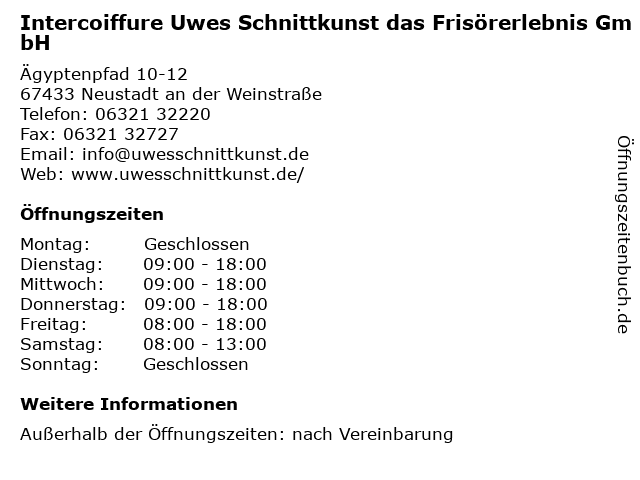 1 Uwes Schnittkunst das Frisörerlebnis GmbH (Entfernung: 0,02 km) Ägyptenpfad 10-12, 67433 Neustadt an der Weinstraße 6 |