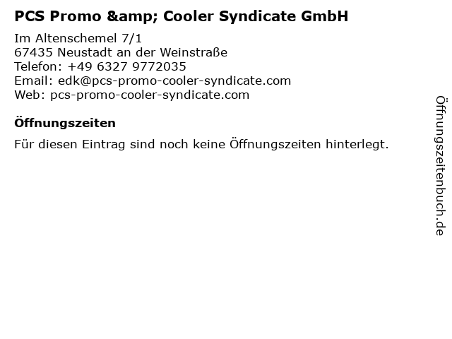 | PCS Promo & Cooler Syndicate GmbH anrufen | |
