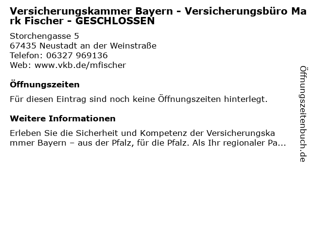 | Versicherungskammer Bayern - Versicherungsbüro Mark Fischer - GESCHLOSSEN anrufen | |