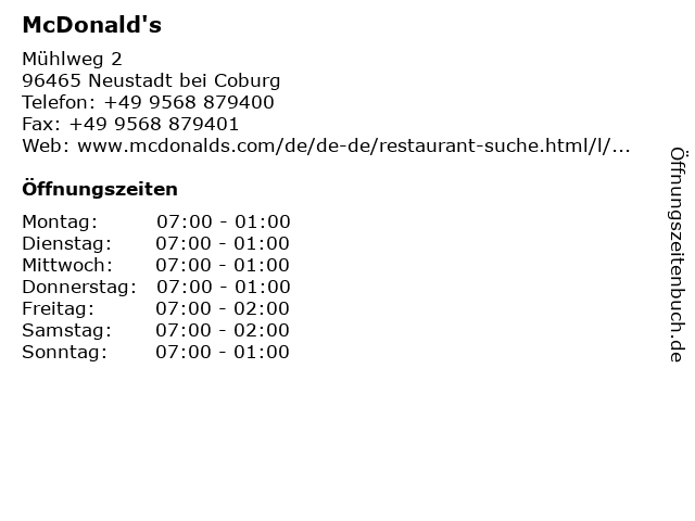 | Öffnungszeiten McDonald's in Neustadt bei Coburg anzeigen | |
