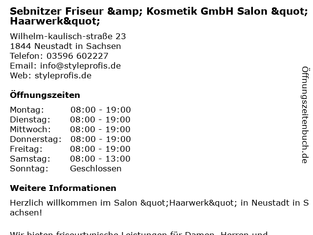 Branchen & Suchbegriffe zu Sebnitzer Friseur & Kosmetik GmbH Salon "Haarwerk":"haarwerk", friseur, kosmetik, salon, sebnitzer |