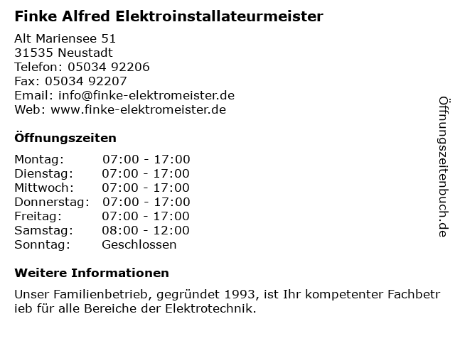 Branchen & Suchbegriffe zu Finke Alfred Elektroinstallateurmeister:alfred, elektroinstallateurmeister, finke |