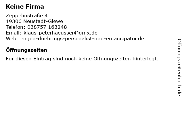 | Öffnungszeiten Keine Firma in Neustadt-Glewe anzeigen | |
