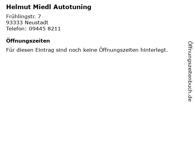 | Öffnungszeiten Helmut Miedl Autotuning in Neustadt anzeigen | |